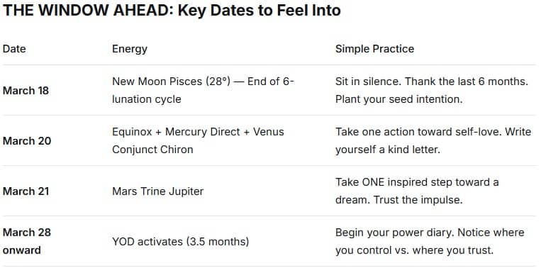 Between March 16-28, we are living through a rare cosmic confluence—a window where multiple transformative energies overlap. If you've felt uncharacteristically tired, irritable, or disoriented these past days, you're not alone. And you're not broken. You're being recalibrated.